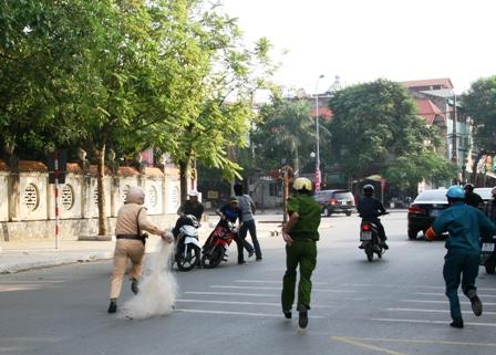 « Công an Việt Nam nay chơi màn « quăng lưới » theo đúng nghĩa đen của từ này. Họ đã quyết định sử dụng những tấm lưới đánh cá để chận bắt những người điều khiển xe được xem là nguy hiểm.