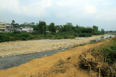 Chúng lấn từng tý đất, bằng cách đổ đất đá, thu hẹp lòng suối thế này đây