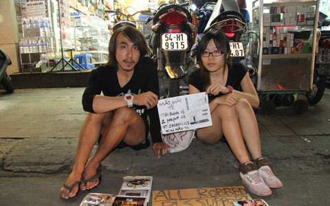 Sau khi trình báo công an phường thì họ nhận được giấy hẹn chờ khoảng tuần nữa lên giải quyết. Chỉ còn rất ít tiền mặt nên họ không thể thuê khách sạn, phải ngủ đêm nhờ tại một nhà dân tại khu Phạm Ngũ Lão. Còn ban ngày thì không biết đi đâu.