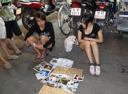 Cặp tình nhân Hồng Kông ngồi bán ảnh trên vỉa hè TP HCM. Ảnh: anhpoly.