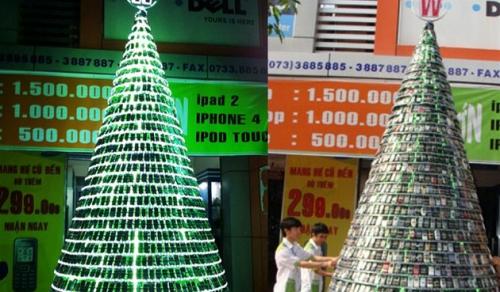 Người Việt dựng cây thông Giáng sinh bằng điện thoại cũ