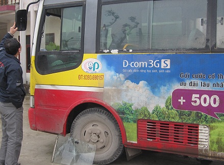 Tài xế xe khách chặn xe, đập vỡ kính xe bus