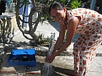 | Bà Nga xem lại vết thương của một bệnh nhân đã được chữa khỏi |