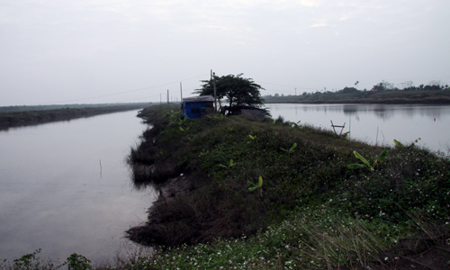 Trên những con đường kẻ ô bàn cờ chia các khu vực đầm nuôi trồng thủy hải sản thành từng ô khoảnh, những hàng chuối đều tăm tắp bời bời mọc lên. Trên mặt nước là cảnh tượng những đàn vịt đẻ hàng trăm con đang thản nhiên bơi lội.