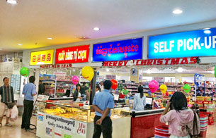 Sinh hoạt buôn bán ở Siêu Thị Việt Nam tại thủ đô Phnom Penh, ngày cận Tết. Quốc Việt RFA