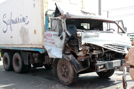 Giao thông hỗn loạn vì xe tải tông đuôi container