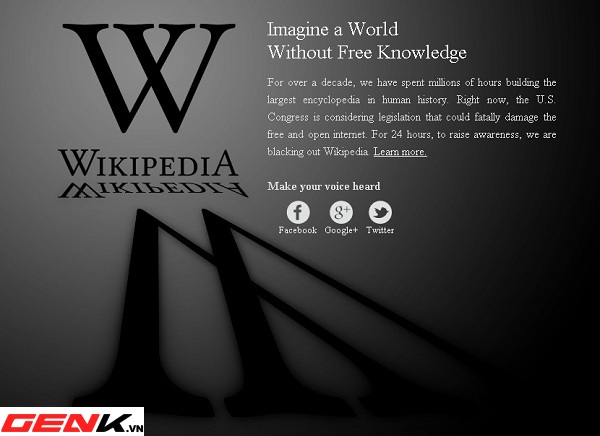 Wikipedia và các trang web lớn bắt đầu ngừng hoạt động