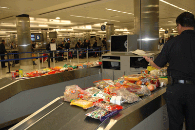 CBP ở phi trường này cũng có cả máy rà hành lư để t́m đồ vật bị cấm mang vào nước Mỹ.