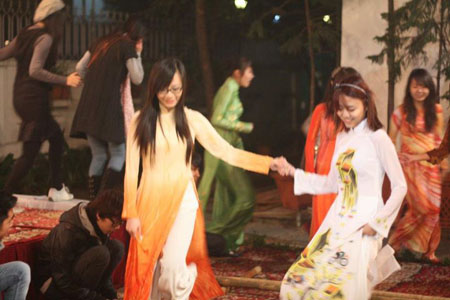 Nữ sinh Việt diện áo dài múa sạp đón Tết ở Ấn Độ