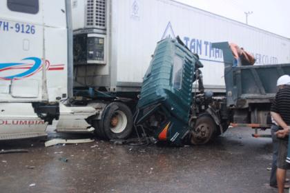 Xe tải lao đầu xuống đường, lái xe may mắn thoát chết