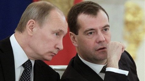 Tổng thống Nga Dmitry Medvedev (phải) và Thủ tướng Vladimir Putin. (Ảnh: AP)