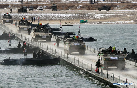 Xe tăng Hàn Quốc tập trận trong giá rét