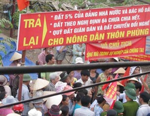 Một trong những vụ khiếu kiện đ̣i đất của dân/Photo courtesy of danluan