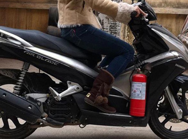 Cháy xe: Rộ phong trào lắp bình cứu hỏa cho xe máy