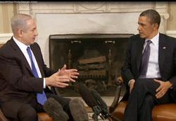 Khi họp báo chung sau cuộc hội kiến hôm thứ hai. Tổng thống Mỹ tuyên bố ông hiểu rằng Thủ tướng Israel và ông đều muốn giải quyết bằng ngoại giao và đều biết cái giá phải trả của chiến tranh. Nhưng đến lượt phát biểu, Thủ tướng Netanyahu không nói ǵ về cấm vận hay đàm phán, mà nhắc lại câu nói của ông Obama rằng Israel là một nước tự chủm tự quyết, có thể tự vệ theo phương cách nào tuỳ ư chọn lựa, và ông nói ông tin rằng v́ thế mà Tổng thống Obama từng đề cao rằng Israel phải giành lấy quyền tự vệ. Thủ tướng Benjamin Netanyahu nhấn mạnh: “Israel phải nắm chắc số phận của ḿnh".