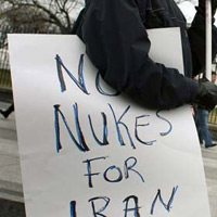 Một số người Mỹ biểu t́nh trước cửa Nhà Trắng để phản đối chương tŕnh hạt nhân của Iran - Ảnh: Getty Images