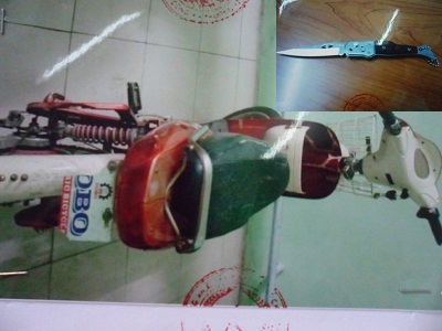 | Chiếc xe đạp điện là tang vật vụ án và con dao gây án |
