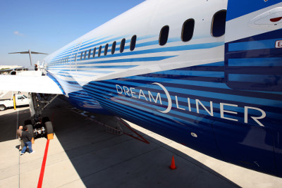 Chiếc Boeing 787 Dreamliner tối tân nhất thế giới hiện này, là thế hệ máy bay mới, tiết kiệm 20% nhiên liệu, được cho là chiếc máy bay sẽ “thay đổi cuộc chơi.” (Hình: David McNew/Getty Images)