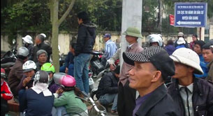 Hàng trăm người dân tập trung trước trụ sở tiếp dân của Thanh tra Huyện Văn Giang từ lúc 9 giờ sáng hôm 15 tháng 3. 2012. RFA screen capture/congbangphapluat