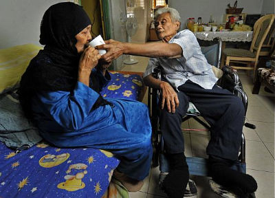 Cảm động cụ ông 77 tuổi ngồi xe lăn chăm vợ liệt giường