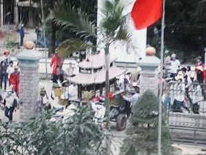 Đưa xe tang vào trụ sở UBND xã và đập phá