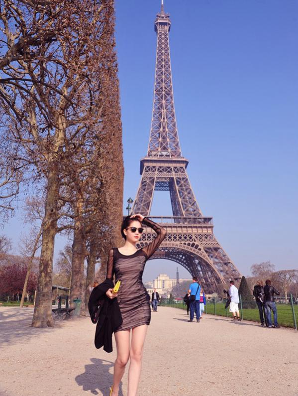 Ngọc Trinh đong đưa dưới chân tháp Eiffel