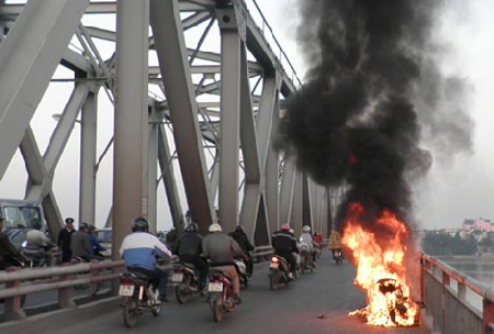 Cháy xe Attila trên cầu Chương Dương