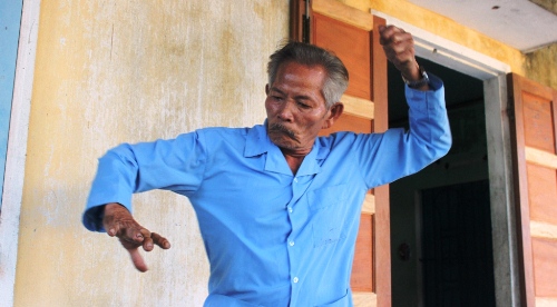 Lão ngư Cao Chảng biểu diễn một "thế" câu cá mập.