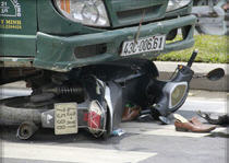 Bị xe tải kéo lê 10 m khi đi qua ngã tư