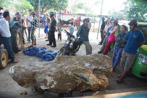 Trước đó, tối 28/3, các cấp chính quyền của huyện này cũng đã tiến hành thu hồi một hòn đá khác của hộ gia đình chị Trần Thị Sắc (42 tuổi) trú cùng thôn La Sa. Khi hộ gia đình chị đào ao lấy nước tưới cây hồ tiêu ở khu vườn kế bên vườn nhà ông Dũng đã phát hiện ra hòn đá cũng gần giống 2 hòn đá nhà ông Dũng.