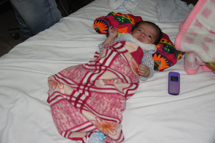 Khi chúng tôi đến, bố cháu đang cho cháu uống sữa. Nh́n bên ngoài, Phương Anh không có biểu hiện ǵ đặc biệt.