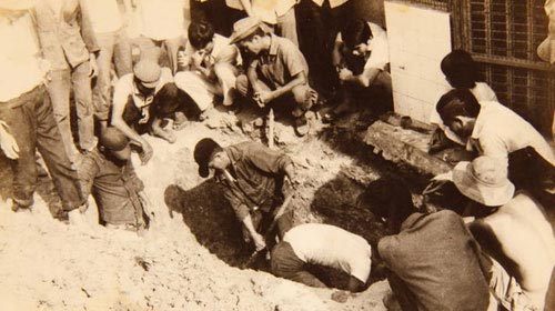 Các nhà khảo cổ và công nhân tiến hành khai quật ngôi mộ cổ của Huỳnh Công Lư - Ảnh tư liệu của Đỗ Đ́nh Truật