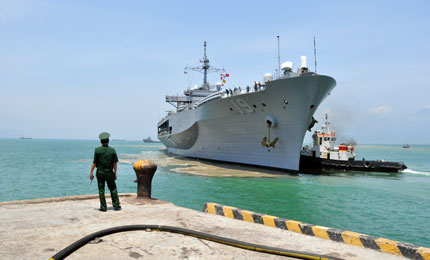 Sáng 23/4, bộ ba chiến hạm USS Blue Ridge (LCC-19), USS Chafee (DDG-90) và USNS Safeguard đưa gần 2.000 sỹ quan và thủy thủ đoàn thuộc Lực lượng đặc nhiệm 73, Tư lệnh Hậu cần Tây Thái Bình Dương, Hải quân Hoa Kỳ cập cảng Tiên Sa (Đà Nẵng), chính thức bắt đầu chuyến thăm hữu nghị tại Đà Nẵng.