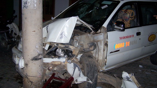 Taxi lao lên vỉa hè, san phẳng quán bánh canh