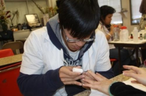 Trong khi ngành nails của Mỹ chỉ có 4% là đàn ông, trong giới nails Việt Nam đàn ông chiếm tới 28%. (Hình: Khoa Vũ/Người Việt)