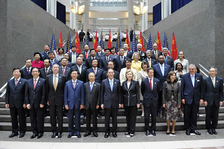| Các nhà lănh đạo hai nước tại SED. Ảnh: Chinadaily |