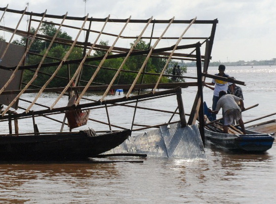 5 người bị thương vì nhà sạt xuống sông trong đêm
