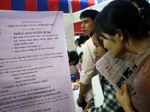 Tại mỗi phiên giao dịch việc làm ở Trung tâm GTVL Hà Nội vài ngh́n người tham gia, mong muốn có được một công việc