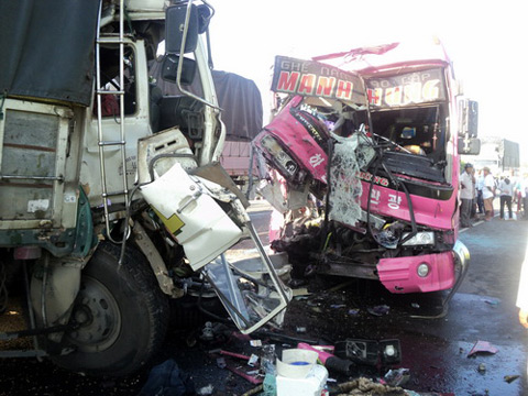 Xe khách đâm xe tải, 2 người chết, 16 người bị thương