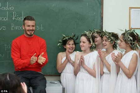 | Beckham cùng ngài Lord Coe đã tới thăm các học sinh tại Trường Thực nghiệm Athens |