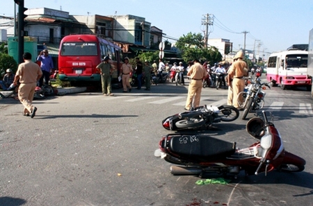 Xe khách 'quét' 3 xe máy, 4 người trọng thương