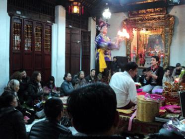 Rồi cô cũng trở thành “thanh” đồng" mà không cần thầy dạy phải hầu theo tuần tự thế nào, nghi thức ra sao. Cô nhảy múa, điệu bộ theo từng nhân vật hoá thân được cảm nhận qua trang phục loè loẹt, sặc sỡ trong không khí giọng Chầu Văn lúc khoan, lúc nhặt; trang trọng khi mời thánh nhập; âm vang khi kể sự tích, công đức; tha thiết khi xin thánh phù hộ và buồn buồn nơi đoạn kết tiễn đưa. Dần dần thành quen, cô đă có một hội bạn thân toàn là những “thanh” đồng" trong xă ngoài thôn luôn luôn đua nhau lễ bái sắm sửa lên đồng cầu an.