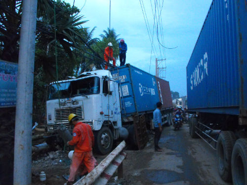 Tài xế buồn ngủ, lao xe đâm gãy cột điện