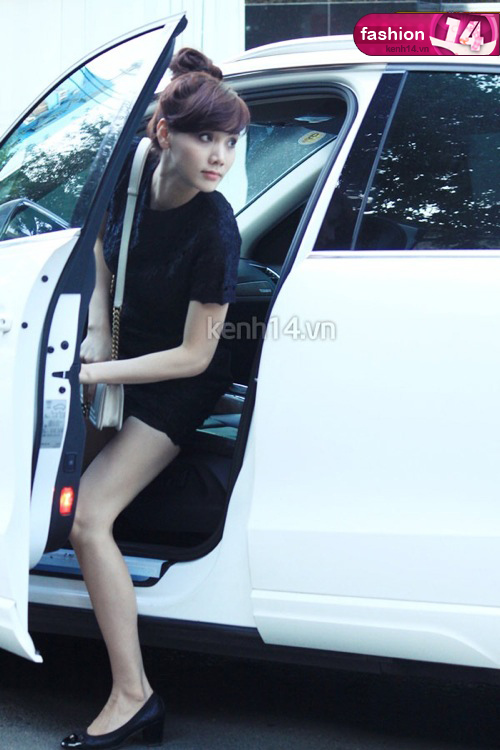 Người đẹp tiếp tục chứng tỏ sự yêu thích thương hiệu Chanel khi thường xuyên dùng những phụ kiện của hãng này. Như thắt lưng dạng dây xích với mặt Chanel...