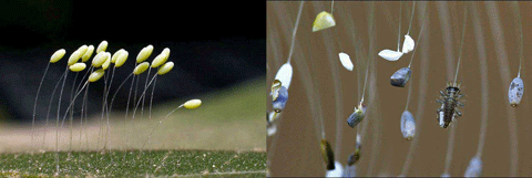 Hoa Ưu Đàm (trái) và trứng của loài côn trùng Green lacewings.