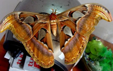 Theo chị Đặng Ánh Tuyết, cách đây mấy hôm, khi gia đình chị đang ăn tối, xem thời sự, thì nghe tiếng vỗ cánh phần phật. Mọi người ngước cổ nhìn lên mái nhà, thấy con bướm khổng lồ bay từ vườn vào nhà.