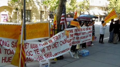 Một số người đã biểu tình phản đối ông Bùi Tín