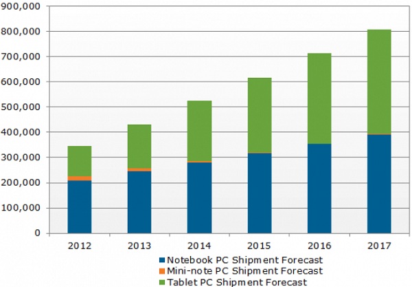 Số lượng máy tính bảng bán ra trên toàn cầu sẽ vượt qua notebook vào năm 2016
