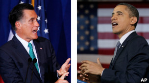 Mitt Romney (trái) đang dẫn trước Tổng thống Obama về tiền quyên góp