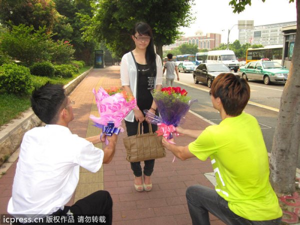 2 thanh niên quỳ gối… tỏ tình 1 cô gái